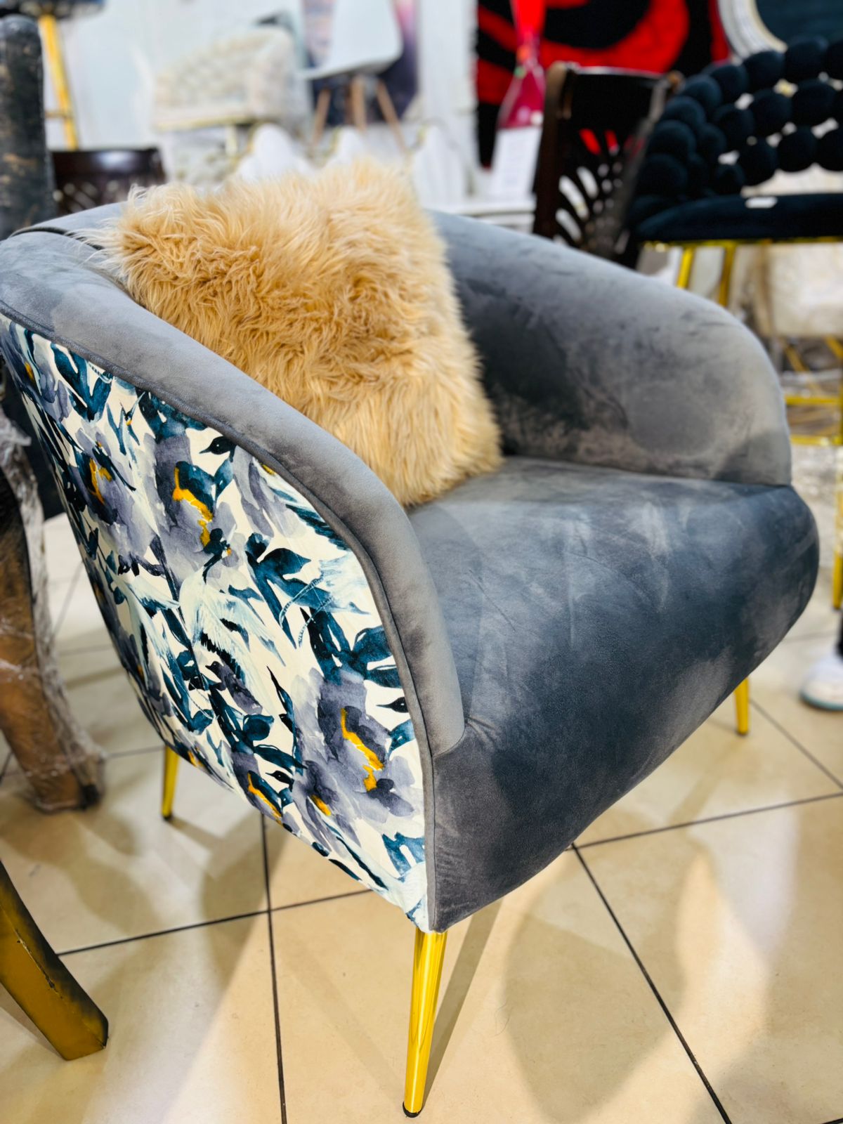 Elevate your space with the sleek sophistication of this Contemporary Accent Chair. Designed to make a statement, this chair features clean lines, a minimalist silhouette, and on-trend upholstery that fits effortlessly into any modern living room, bedroom, or office.