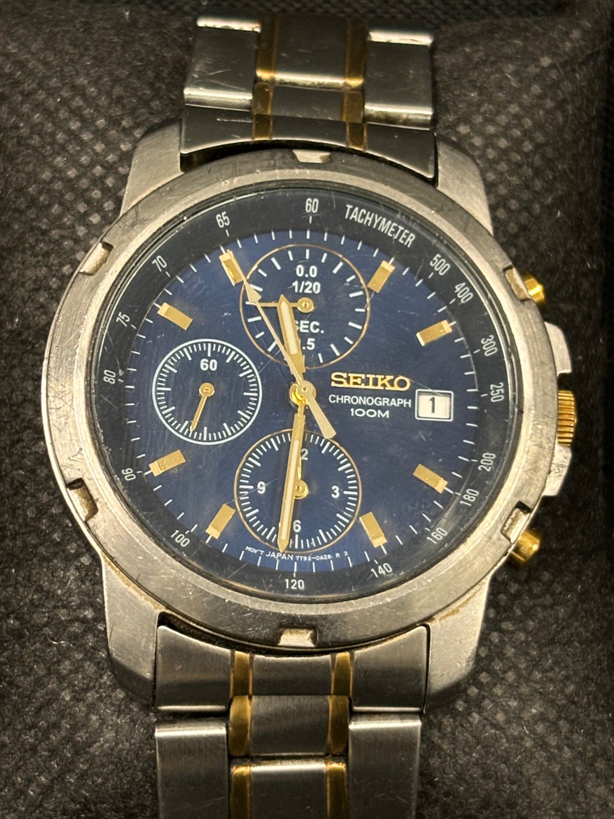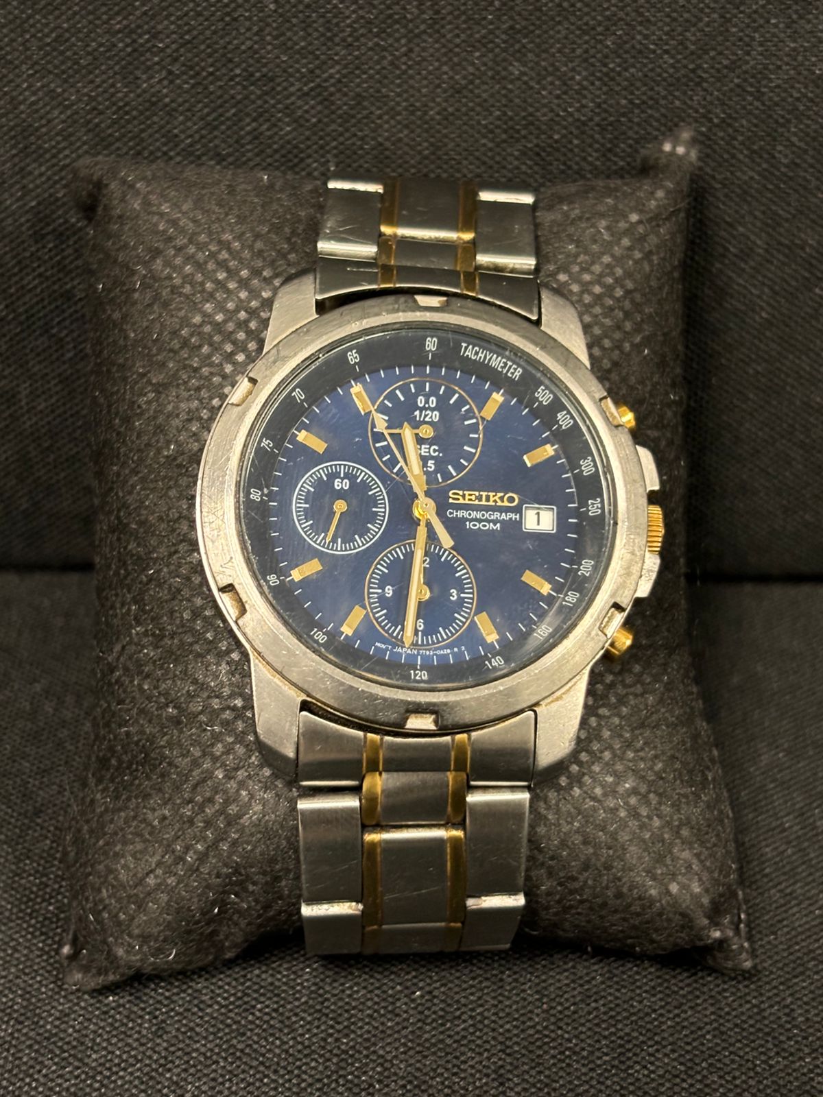 The Seiko Chronograph 7T92 is a versatile and stylish quartz-powered chronograph watch.